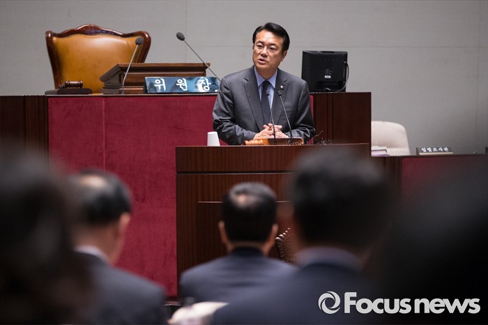 (서울=포커스뉴스) 운영위원장을 맡게 된 정진석 새누리당 원내대표가 13일 오전 서울 여의도 국회에서 열린 의원총회에서 발언하고 있다.