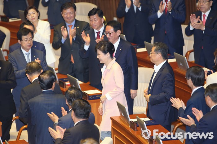 (서울=포커스뉴스) 박근혜 대통령이 13일 오전 서울 여의도 국회에서 열린 20대 국회 개원식에 참석하고 있다.