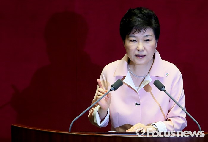 (서울=포커스뉴스) 박근혜 대통령이 13일 오전 서울 여의도 국회에서 열린 20대 국회 개원식에 참석해 연설을 하고 있다.