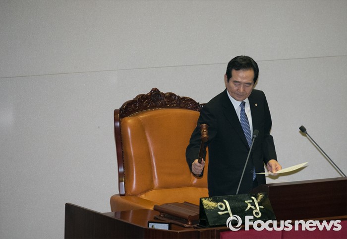 (서울=포커스뉴스) 13일 오후 서울 여의도 국회에서 상임위원장 선출을 위해 열린 343회 국회(임시회) 2차 본회의에 참석한 정세균 국회의장이 안건 의결을 하고 있다.