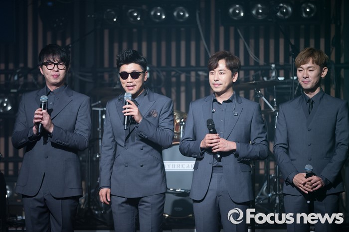(서울=포커스뉴스) 13일 오후 서울 마포구 웨스트브릿지 라이브 홀에서 열린 데이브레이크의 네 번째 정규앨범 'WITH' 발매 기념 쇼케이스에서 데이브레이크 맴버들이 인사하고 있다. 왼쪽부터 키보드 김장원, 베이스 김선일, 보컬 이원석, 기타 정유종