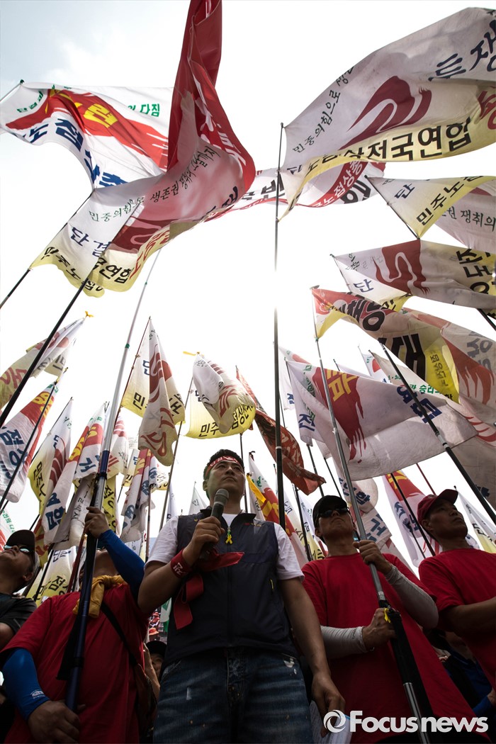 (서울=포커스뉴스) 13일 오후 서울 용산구 서울역광장에서 '제 29주년 6.13 정신계승 전국노점상대회'가 열리고 있다. 6.13 대회는 1988년 6월 13일 억눌린 노점상의 울분이 처음 세상 밖으로 터져 나온 날을 기념하기 위한 날이며 이번 집회에서는 노점관리대책 중단, 노점 생존권 보장, 기본법 및 노점상보호 특별법 제정 등을 요구했다.