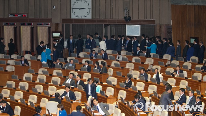 (서울=포커스뉴스) 13일 오후 서울 여의도 국회에서 상임위원장 선출을 위해 열린 343회 국회(임시회) 2차 본회의에 참석한 의원들이 투표를 위해 줄을 서서 기다리고 있다.