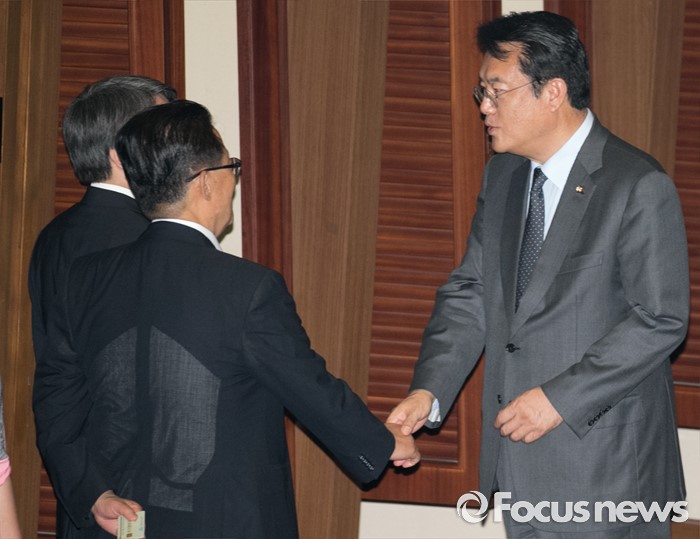 | △ 안철수-박지원과 인사하는 정진석 |