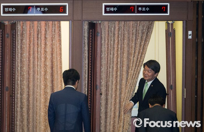 (서울=포커스뉴스) 13일 오후 서울 여의도 국회에서 상임위원장 선출을 위해 열린 343회 국회(임시회) 2차 본회의에 참석한 안철수 국민의당 대표가 투표 후 투표장을 나서고 있다.