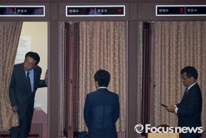 (서울=포커스뉴스) 13일 오후 서울 여의도 국회에서 상임위원장 선출을 위해 열린 343회 국회(임시회) 2차 본회의에 참석한 정진석 새누리당 원내대표가 투표장을 들어서고 있다.