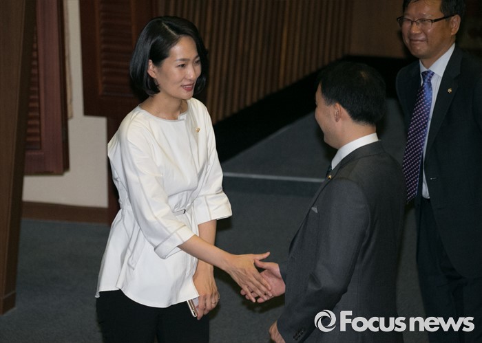 (서울=포커스뉴스) 13일 오후 서울 여의도 국회에서 상임위원장 선출을 위해 열린 343회 국회(임시회) 2차 본회의에 참석한 김수민(왼쪽) 국민의당 의원이 투표 후 동료 의원들과 인사하고 있다.
