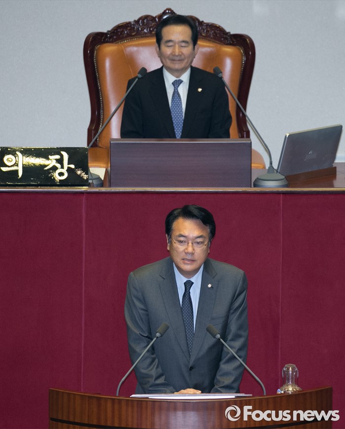 (서울=포커스뉴스) 13일 오후 서울 여의도 국회에서 열린 343회 국회(임시회) 2차 본회의에 참석한 정진석 신임 운영위원장이 당선 인사를 하고 있다.
