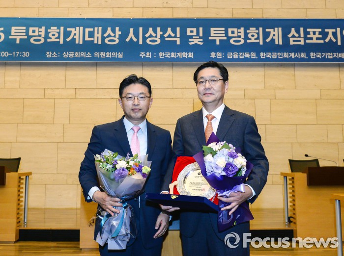 (서울=포커스뉴스) 기아자동차가 13일 대한상공회의소에서 진행된 한국회계학회 주최 '2016 투명회계 우수기업 시상식'에서 상장사 최초로 자산규모 2조원 이상 기업 부문 대상을 2년 연속 수상했다.