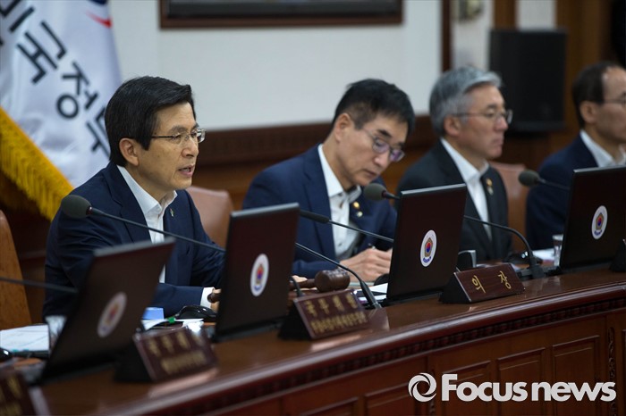 (서울=포커스뉴스) 14일 오전 서울 종로구 정부서울청사에서 열린 국무회의에 참석한 황교안 국무총리가 모두발언을 하고 있다.