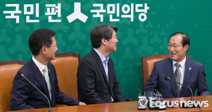 (서울=포커스뉴스) 안철수(가운데) 국민의당 상임공동대표, 천정배(왼쪽) 공동대표가 14일 오전 서울 여의도 국회를 방문한 이원종 대통령비서실장과 면담을 하고 있다.