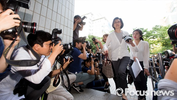 (서울=포커스뉴스) 미공개 정보를 이용해 주가하락 손실을 피한 혐의를 받고 있는 최은영 전 한진해운 회장이 14일 오전 서울 양천구 남부지방법원에서 영장실질심사를 받기 위해 법정으로 향하고 있다.