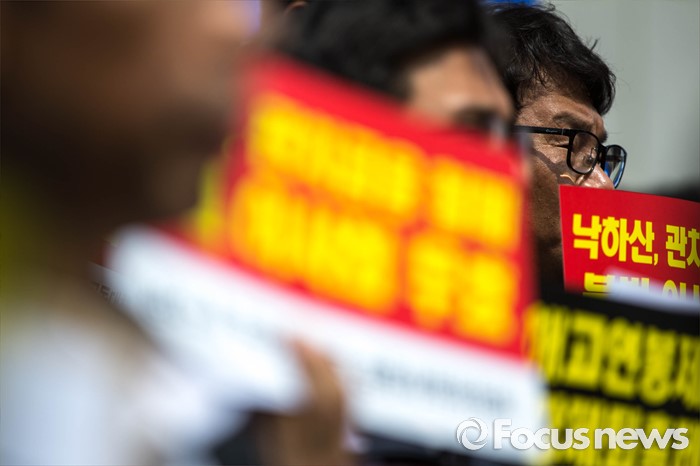 (서울=포커스뉴스) 14일 오전 서울 종로구 세종문화회관 앞에서 양대노총 공공부문공대위가 주최하는 '성과연봉제 중단 촉구 및 공공기관장 워크숍 규탄 기자회견'이 열리고 있다.