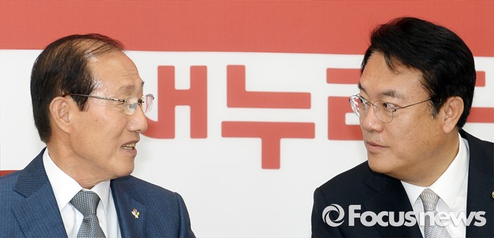 (서울=포커스뉴스) 정진석(오른쪽) 새누리당 원내대표가 14일 오전 서울 여의도 국회를 방문한 이원종 대통령비서실장과 면담을 하고 있다.