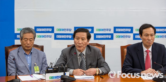 (서울=포커스뉴스) 정기섭 개성공단기업협회 회장이 14일 오전 서울 여의도 국회를 방문해 우상호 더불어민주당 원내대표와 면담에 앞서 발언 하고 있다.
