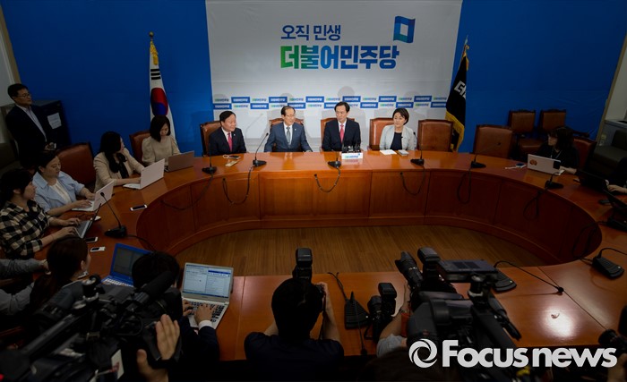 (서울=포커스뉴스) 우상호(오른쪽 두 번째) 더불어민주당 원내대표가 14일 오후 서울 여의도 국회에서 이원종(오른쪽 세 번째) 대통령비서실장과 면담하고 있다.