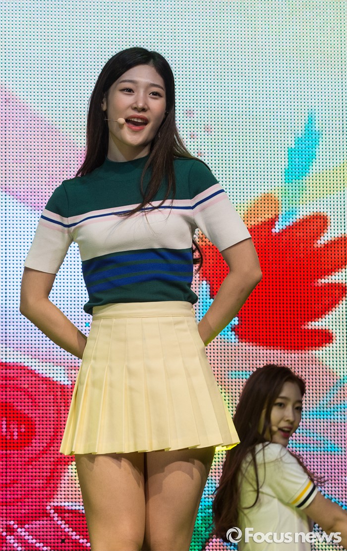 (서울=포커스뉴스) 14일 오후 서울 마포구 롯데카드 아트센터에서 열린 걸그룹 다이아의 두번째 앨범 'HAPPY ENDING' 발표 쇼케이스에 참여한 멤버 채연이 무대를 선보이고 있다.