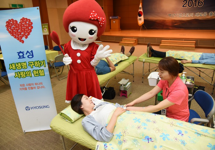 효성은 매년 대한적십자사와 함께 2008년부터 '사랑의 헌혈'행사를 정기적으로 진행해 왔다. 그 동안 참여한 임직원은 5500여명으로 매해 약 700명의 임직원들이 생명을 구하는 활동에 동참해 왔다.