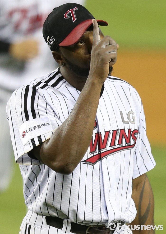 (서울=포커스뉴스) 14일 서울 잠실구장에서 열린 2016 프로야구 NC-LG 경기에서 LG 소사가 7회초 수비를 마치고 내려오며 세레머니를 하고 있다.