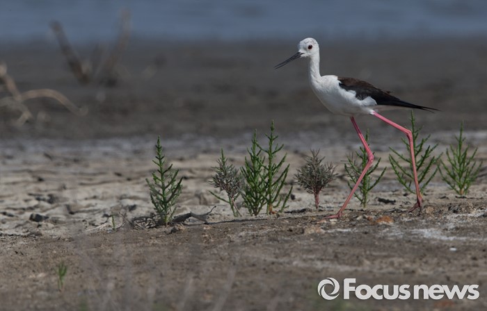 (인천=포커스뉴스) 사방이 물로 에워싸,육지동물의 접근이 어려운 습지안의 조그만 섬에 장다리물떼새가 둥지 틀 장소를 물색하고 있다.