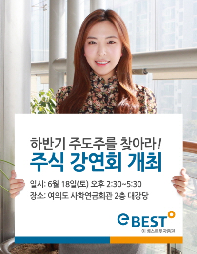 (서울=포커스뉴스) 이베스트투자증권은 18일 여의도 사학연금회관 2층 대강당에서 ‘하반기 주도주를 찾아라’ 주식 강연회를 개최한다고 15일 밝혔다.