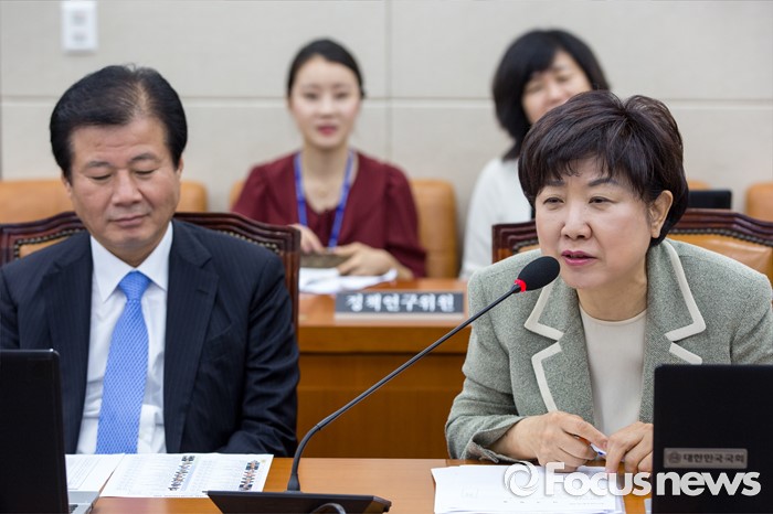 (서울=포커스뉴스) 박인숙(오른쪽) 보건복지위 새누리당 간사가 15일 오전 서울 여의도 국회에서 열린 '보건복지위원회 전체회의'에 참석해 인사말 하고 있다.