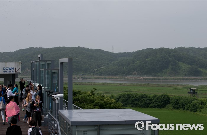 (파주=포커스뉴스) 6·15 남북공동선언 16주기인 15일 오전 경기도 파주 임진각 통일전망대를 방문한 관광객들이 주변을 둘러보고 있다.