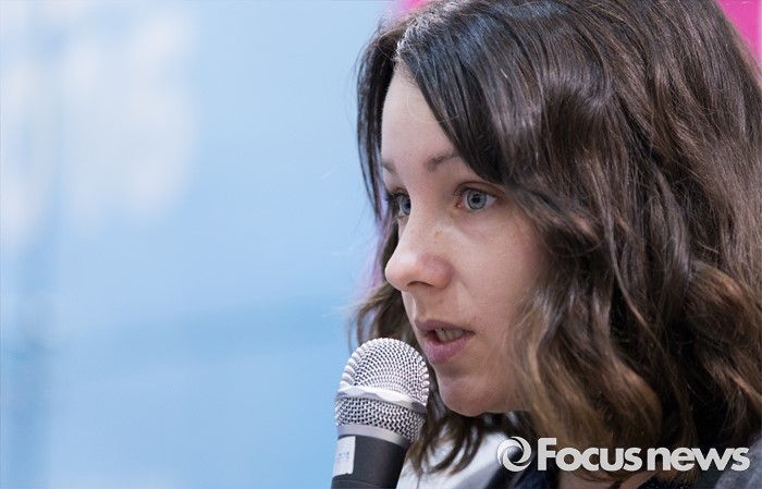 (서울=포커스뉴스) 15일 오후 서울 강남구 코엑스에서 열린 2016 서울국제도서전에서 '채식주의자'의 번역가인 데보라 스미스가 기자회견을 하고 있다.