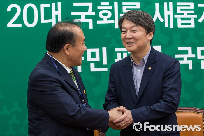 (서울=포커스뉴스) 안철수(오른쪽) 국민의당 상임공동대표와 장휘국 전국시도교육감협의회 회장이 15일 오후 서울 여의도 국회에서 열린 '전국시도교육감협의회 감담회'에 참석해 악수 하고 있다.