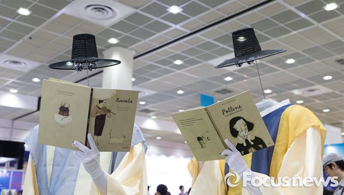 (서울=포커스뉴스) 15일 오후 서울 강남구 코엑스에서 열린 2016 서울국제도서전에서 도서전 관계자들이 퍼포먼스를 하고 있다.