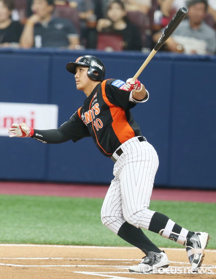 (서울=포커스뉴스) 15일 서울 고척 스카이돔 구장에서 열린 2016 프로야구 롯데-넥센 경기 1회초 1사 2루에서 롯데 황재균이 선취 득점을 올리는 좌중간 2루타를 날리고 있다.