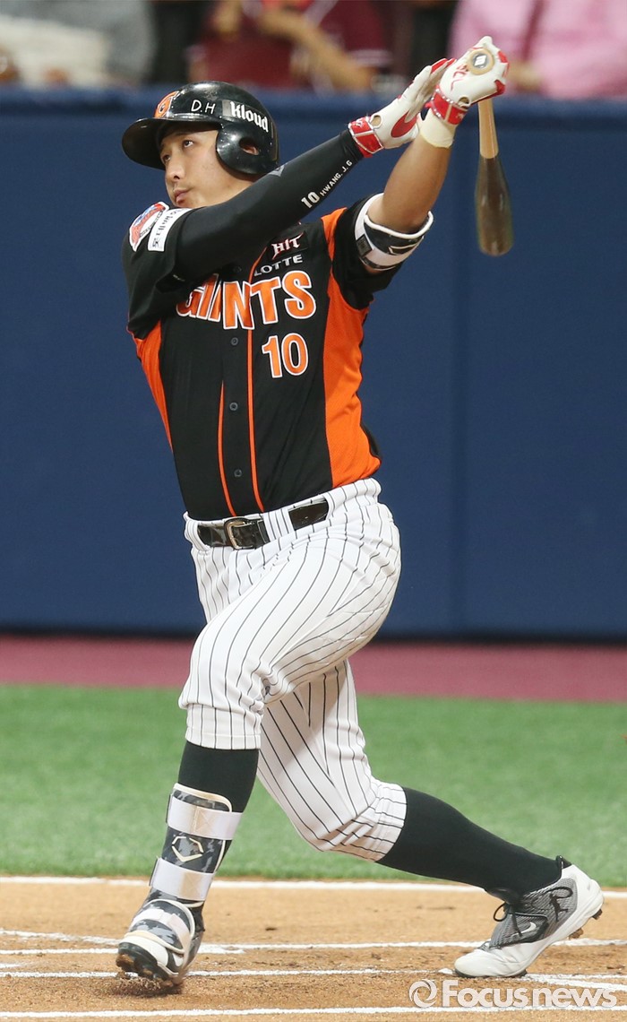 (서울=포커스뉴스) 15일 서울 고척 스카이돔 구장에서 열린 2016 프로야구 롯데-넥센 경기 1회초 1사 2루에서 롯데 황재균이 선취 득점을 올리는 좌중간 2루타를 날리고 있다.