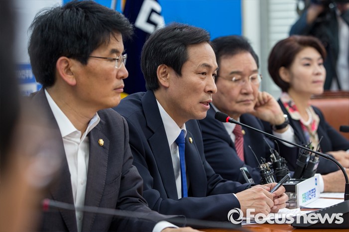 (서울=포커스뉴스) 우상호 더불어민주당 원내대표가 16일 오전 서울 여의도 국회에서 열린 정책조정회의에 참석해 모두발언 하고 있다.