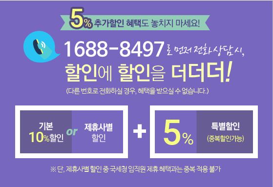 이번 추가 할인은 정회원·제휴사·엘지유플러스((LGU+)회원 할인을 받았더라도 중복으로 적용된다. 단, 대표번호를 통한 가입에 한해서만 사용 가능하다.