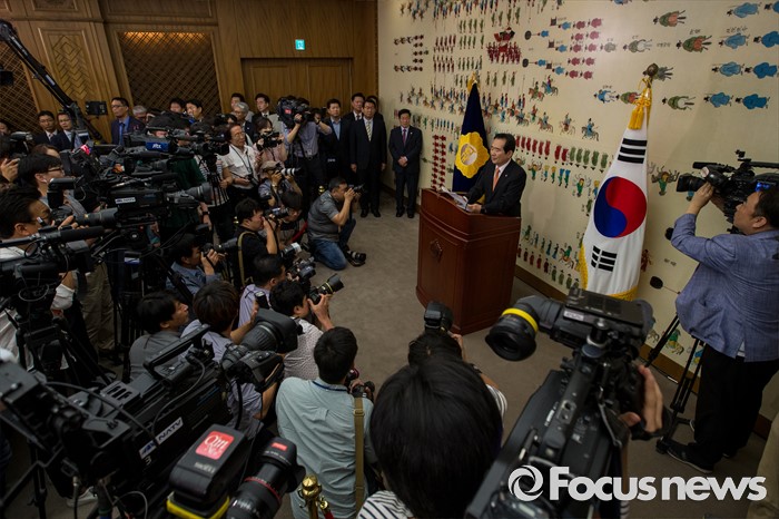 (서울=포커스뉴스) 정세균 국회의장이 16일 오전 서울 여의도 국회에서 열린 취임 기자간담회에 참석해 취임 소감을 발표 하고 있다.