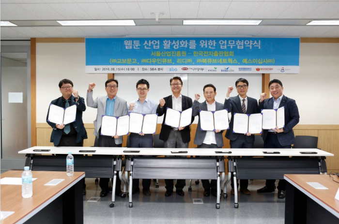 (서울=포커스뉴스) 서울산업진흥원(이하 SBA)은 웹툰 콘텐츠 육성을 위해 지난 15일 서울 상암동 SBA 본사에서 한국드라마제작사협회, 한국전자출판협회와 '제1회 SBA 웹툰파트너스 데이'를 개최하고 업무협약(MOU)을 체결했다.