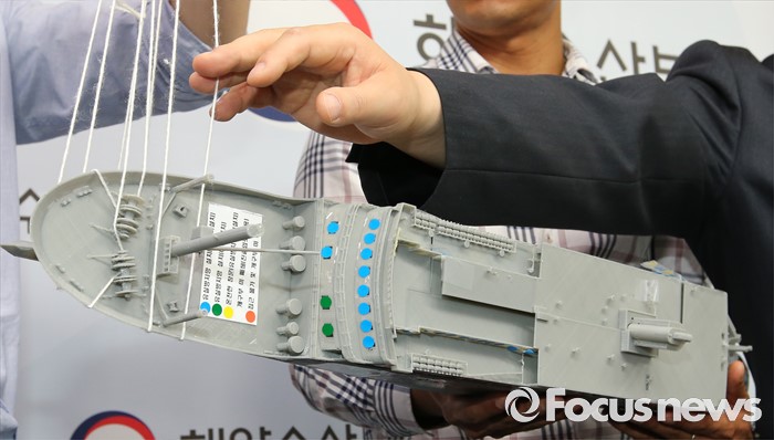 (세종=포커스뉴스) 김현태 세월호 선체인양추진단 부단장이 16일 오후 세종시 정부세종청사 해양수산부 기자실에서 세월호 선체인양에 과정을 설명하고 있다.