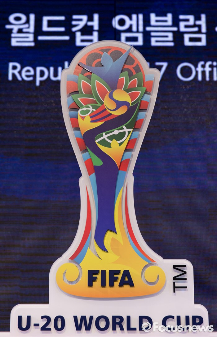 (서울=포커스뉴스) 16일 오후 서울 종로구 올레스퀘어에서 FIFA U-20 월드컵 엠블럼·슬로건이 발표되고 있다.