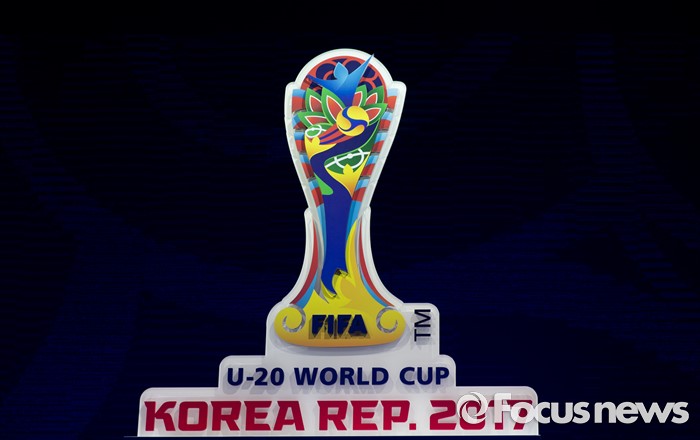 (서울=포커스뉴스) 16일 오후 서울 종로구 올레스퀘어에서 FIFA U-20 월드컵 엠블럼·슬로건이 발표되고 있다.
