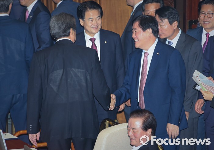 | △ 인사하는 김무성-최경환 |