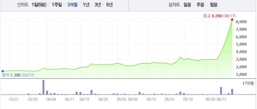 지에스인스트루는 17일 오전 9시10분 현재 전일 대비 25.04%(1650원) 상승한 8210원에 거래되고 있다. 지에스인스투르는 13일부터 16일까지 29.98%, 30%의 상승폭을 기록하는 등 뚜렷한 상승곡선을 그려왔다.