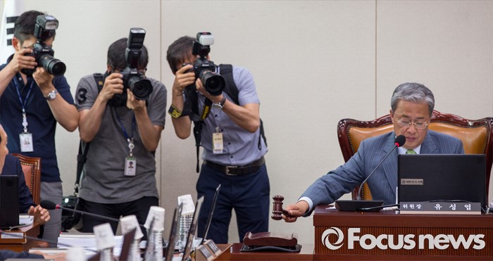 (서울=포커스뉴스) 유성엽 국회 교육문화체육관광위원회 위원장이 17일 오전 서울 여의도 국회에서 열린 '교육문화체육관광위원회 전체회의'에 참석해 의사봉을 두드리고 있다.