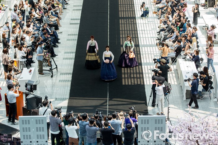 (서울=포커스뉴스) 17일 오후 서울 여의도 국회의원회관에서 열린 '2016 대한민국 국회 초청패션쇼-품'에서 모델들이 한복을 입고 멋진 워킹을 선보이고 있다.