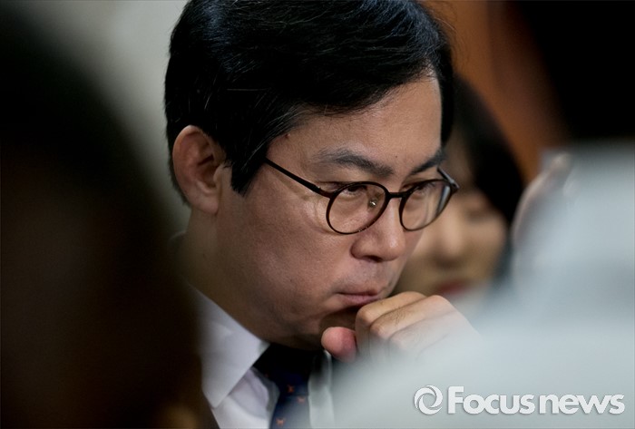 (서울=포커스뉴스) 김영우 새누리당 혁신비대위원이 17일 오전 서울 여의도 국회 정론관에서 전날 비대위 회의에서 논의된 탈당파 의원 일괄복당 결정과 관련 브리핑을 마친 뒤 취재진 질문에 답하고 있다.