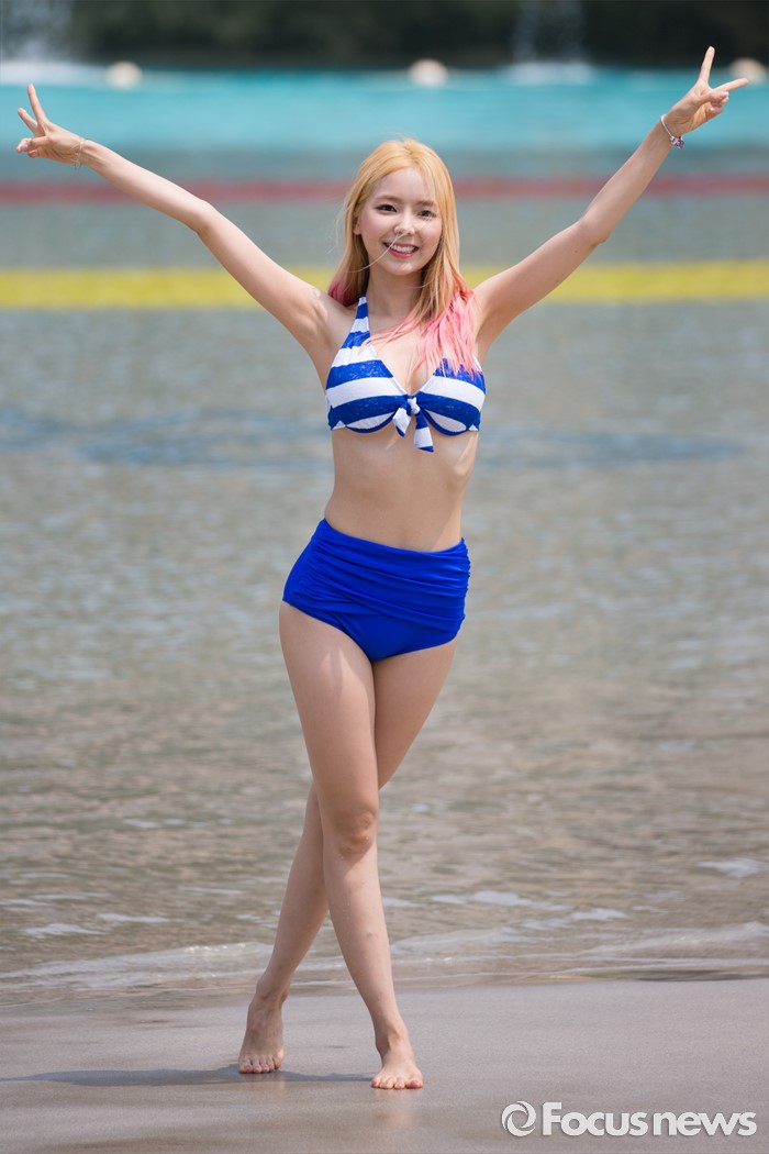 (홍천=포커스뉴스) 걸그룹 스텔라 멤버 효은이 17일 오후 강원도 홍천군 대명비발디파크 오션월드에서 진행된 포토데이 행사에 참석해 비키니를 입고 포즈를 취하고 있다.
