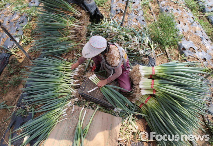 파 수확하는 풍경
