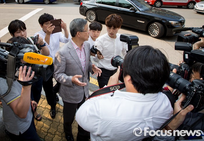 | △ 취재진에 둘러싸인 선 김희옥 위원장 |