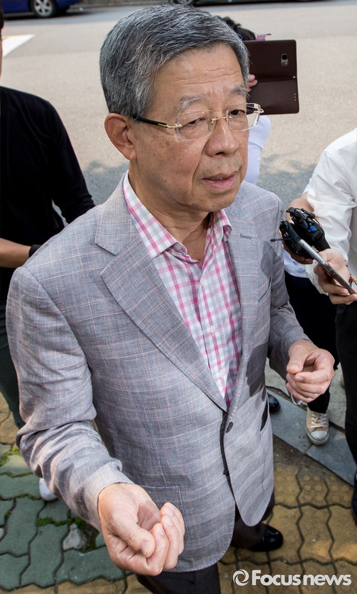 (서울=포커스뉴스) 칩거 중으로 알려진 김희옥 새누리당 혁신비상대책위원장이 17일 오후 서울 논현동의 자택으로 향하며 취재진의 질문에 답하고 있다.