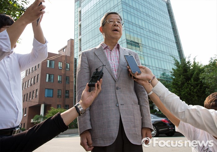 (서울=포커스뉴스) 칩거 중으로 알려진 김희옥 새누리당 혁신비상대책위원장이 17일 오후 서울 논현동의 자택으로 향하며 취재진의 질문에 답하고 있다.
