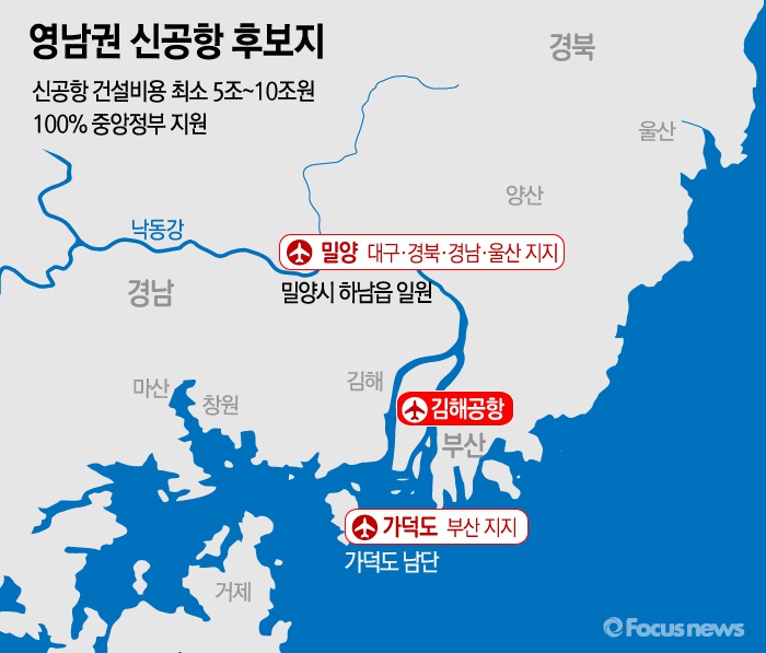 (서울=포커스뉴스) 동남권 신공항 입지 발표를 앞두고 최근 정치권에선 부산 가덕도와 경남 밀양을 두고 지역 갈등이 또 다시 수면위로 올라왔다.